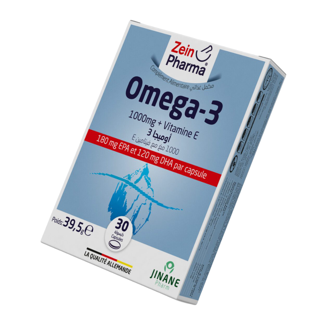 Zein Pharma Omega-3 1000 + Vitamine E soutient votre cœur et votre cerveau avec une formule riche en EPA/DHA.