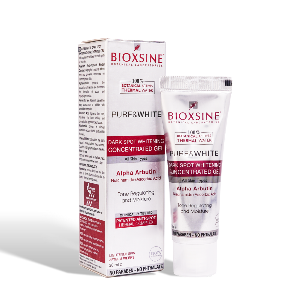 BIOXCIN Pure White Gel Concentré Éclaircissant Taches Brunes 30 ml est un soin intensif qui agit directement sur les taches pigmentaires pour atténuer leur apparence et unifier le teint. Sa formule légère et concentrée pénètre rapidement, ciblant les zones à problèmes sans laisser de film gras. Idéal pour compléter une routine visage éclaircissante.